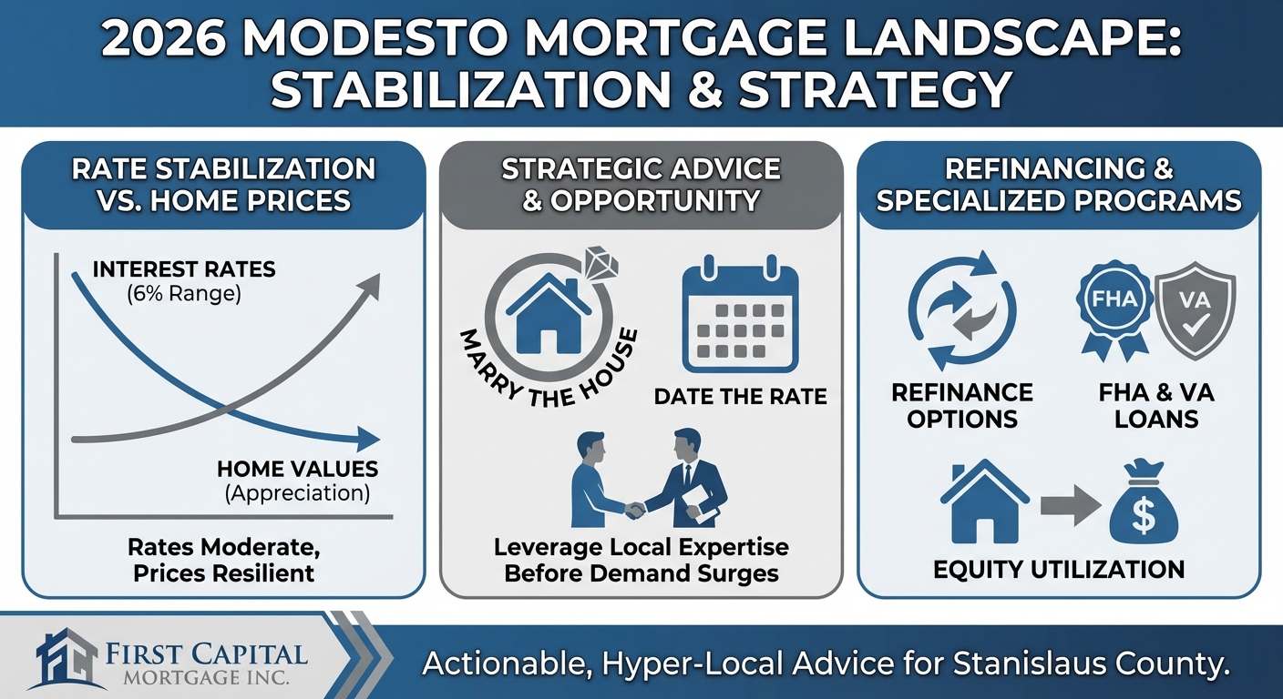 First Capital Mortgage Inc., a leading local mortgage brokerage serving Modesto and the greater Central Valley, has officially released its 2026 Home Loan Market Update. This strategic report addresses the evolving economic landscape, highlighting a pivotal shift in mortgage interest rates and buyer activity that is reshaping the local real estate market. The update offers critical insights for first-time homebuyers, investors, and homeowners considering refinancing in the current 2026 economic environment.